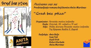 Poštovani, Hrvatska matica iseljenika kao organizator i domaćin poziva Vas na predstavljanje novog romana Grad bez ptica, Anite Martinac koje će se održati u četvrtak 20. veljače u 19.00 sati u Hrvatskoj matici iseljenika u Zagrebu (Trg Stjepana Radića 3.) U programu sudjeluju: Ante Beljo i general Ivan Tolj, koji će se …