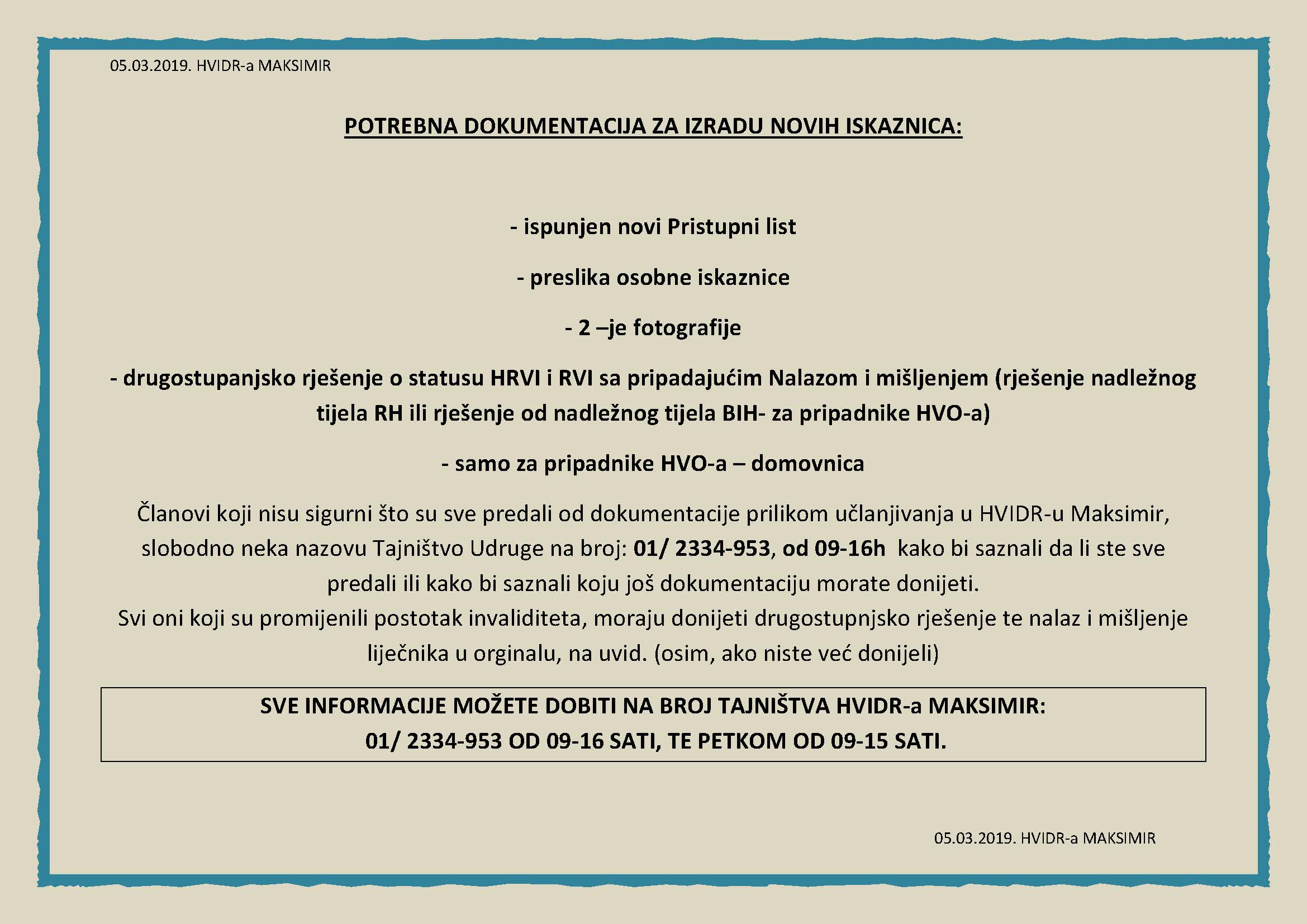 Pozivamo Vas da svi do 15.03.2019. dođete u Udrugu HVIDR-a Maksimir kako bi ispunili novi pristupni list, donijeli svu traženu dokumentaciju i 2-je fotografije kako bi dobili nove članske iskaznice.